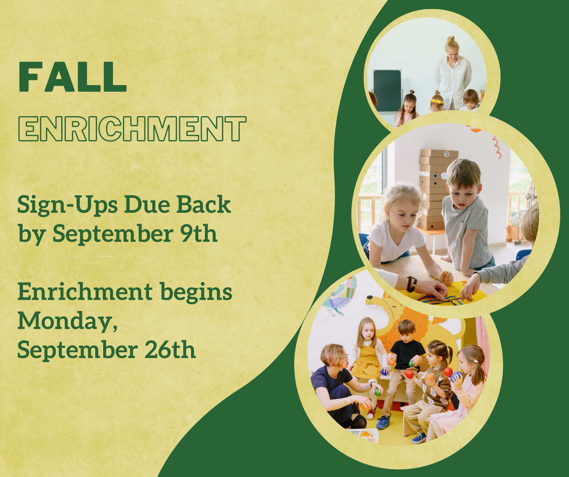 Back to All Events 1st Day of Enrichment Monday, September 26, 2022 11:30 AM 1:30 PM Google Calendar ICS