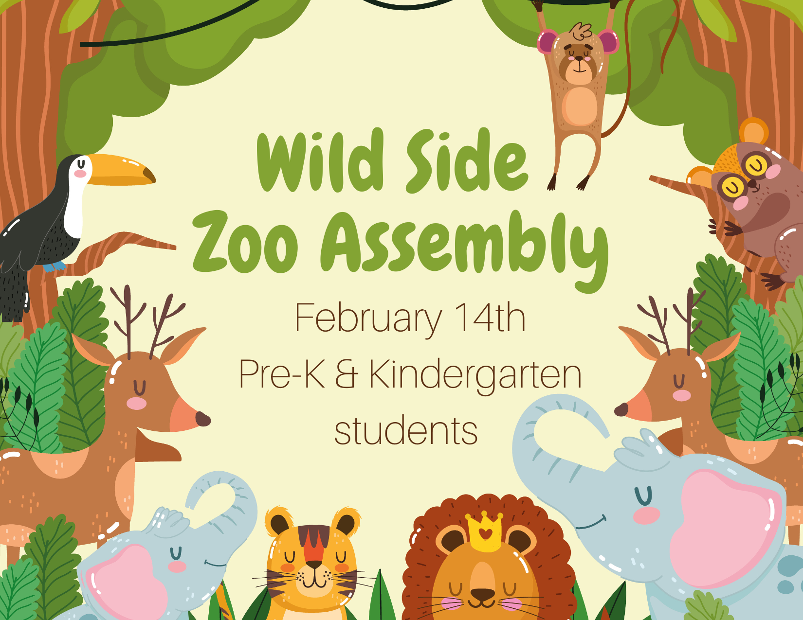 Wild Side Zoo Assembly - Pre-K & Kindergarten Wednesday, February 14, 2024 9:00 PM 10:00 PM Google Calendar ICS